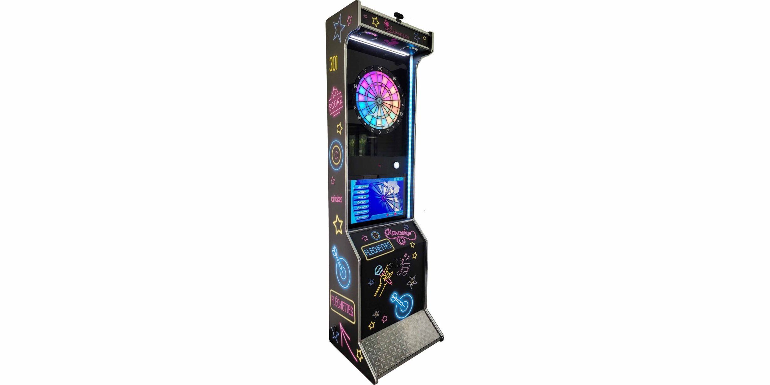 Que ce soit en journée ou en soirée, succès garanti avec cette nouvelle borne qui vous permettra de jouer à la fois aux fléchettes et de chanter vos chansons préférées (pas en même temps hein 😉)